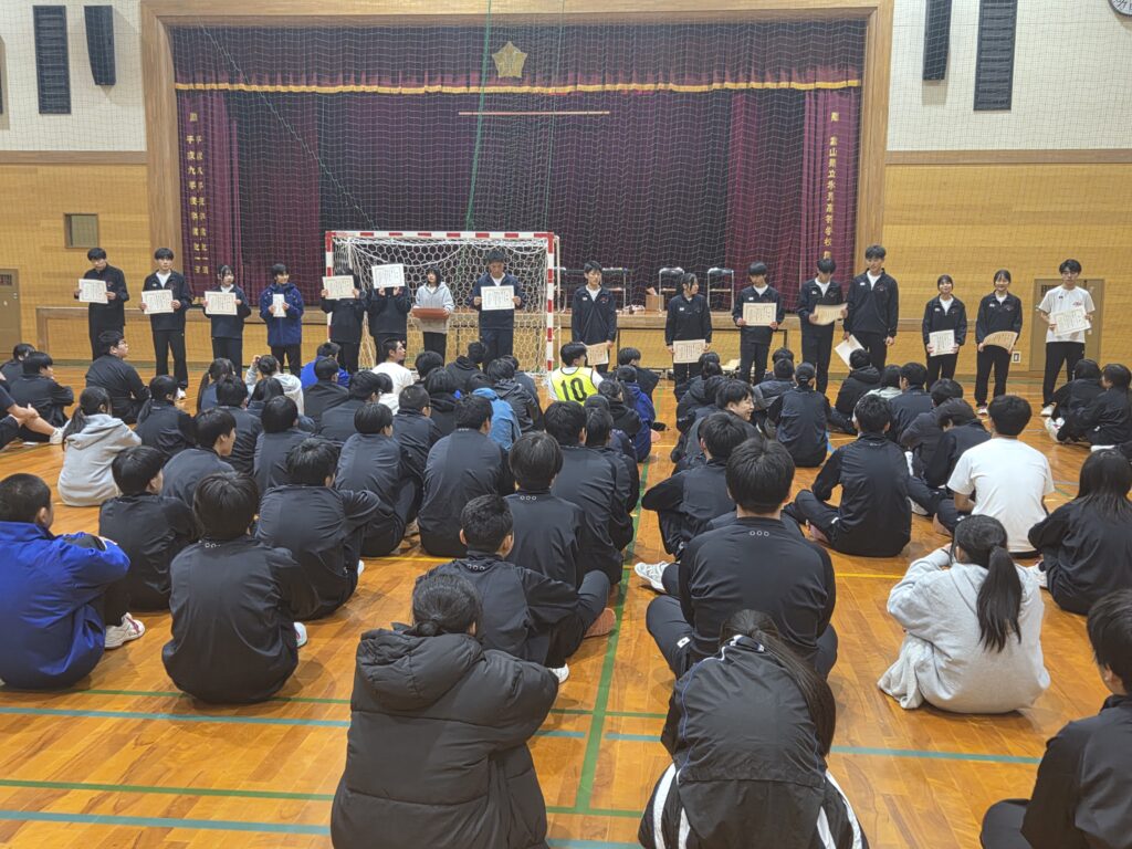 ハンドボール競技では大きな声援の中、クラスの威信をかけて最後まで諦めずにプレーする姿が見られました。生徒主体で企画運営してくれたおかげで、球技大会は大成功に終わりました。