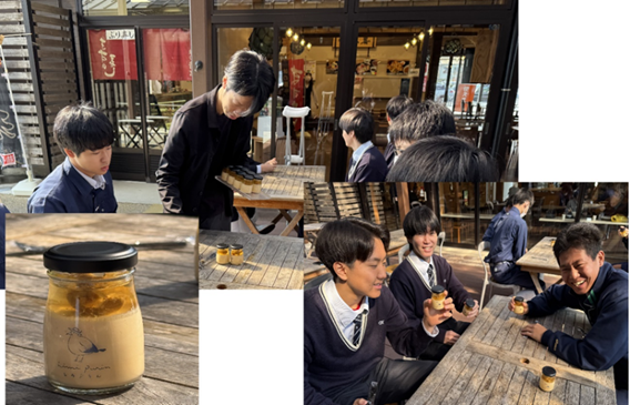 ひみぷりんの池田マネージャーさんから、完成したぷりんをいただきました。ぷりんの上に、私たちが駆除して育てたウニが特製出汁のジュレとしてかかっています。 苦みがなく、甘いウニと和風ぷりんがとてもよく合っていました。たいへん美味しかったです。一般販売が待ち遠しいです。