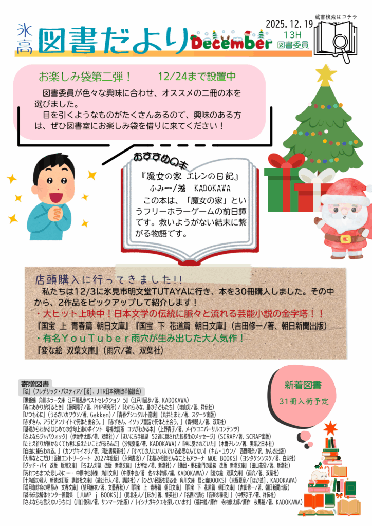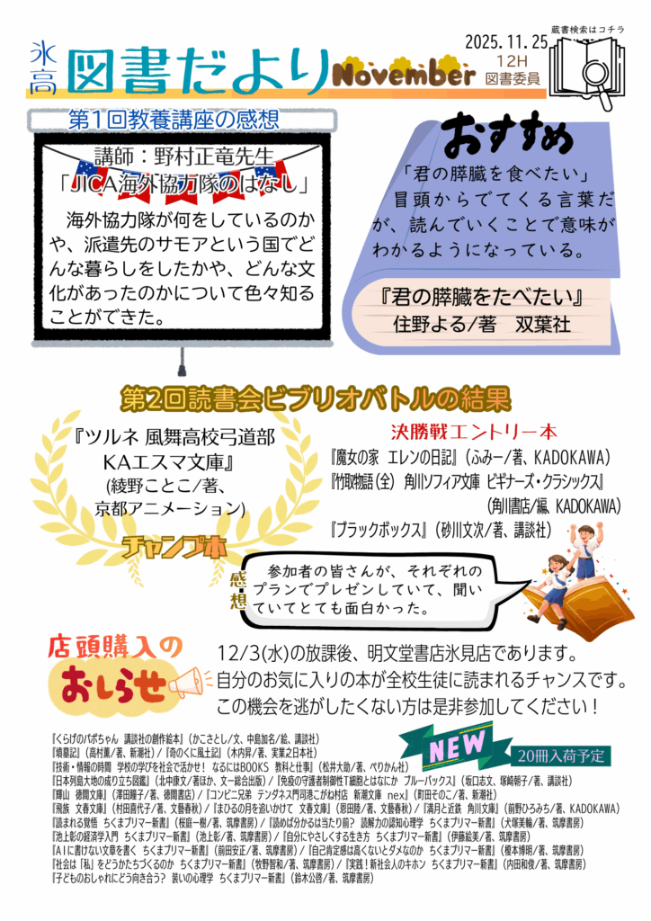 11月号は12H、12月号は13Hの図書委員がCanvaを使って作成しました。