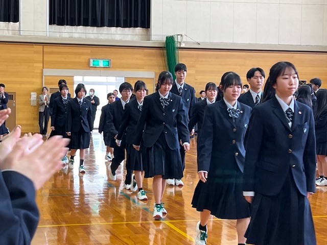 4月9日(木)に第一体育館にて、新入生と在校生の対面式を行いました。