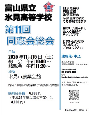 旧氷見高校・有磯高校・氷見高校の卒業生はどなたでも参加できます。
