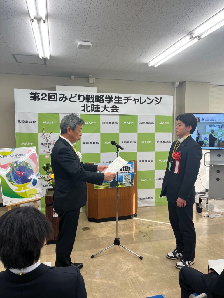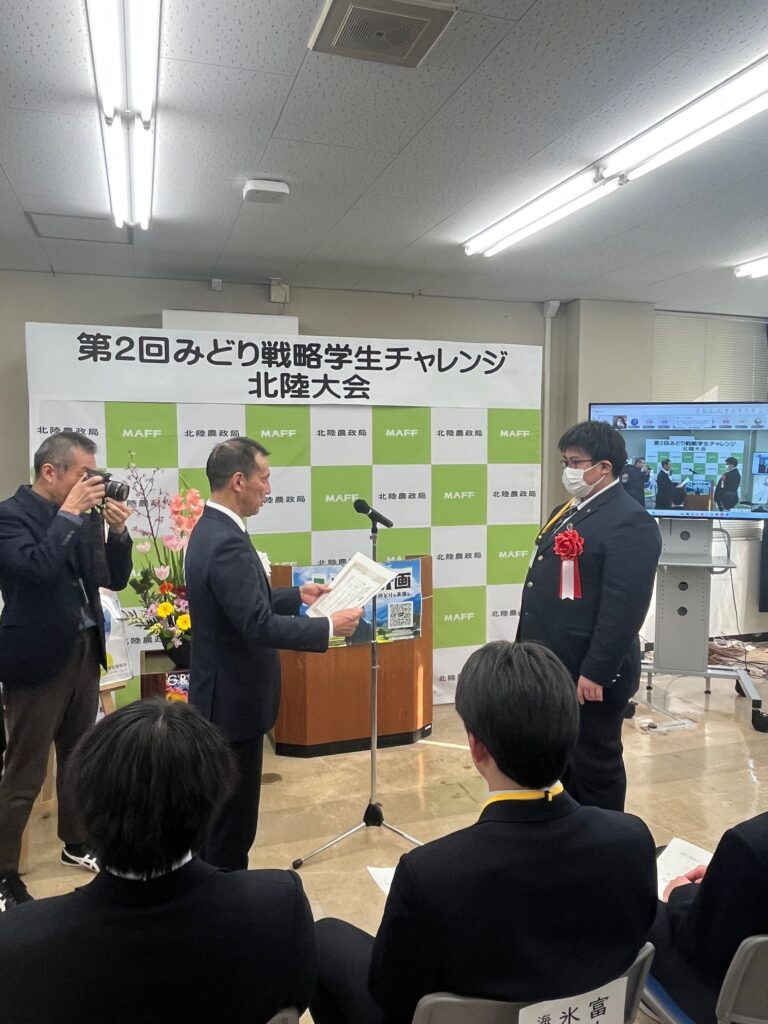 第2回みどり戦略学生チャレンジ北陸大会において最優秀賞及び審査委員長を受賞いたしました