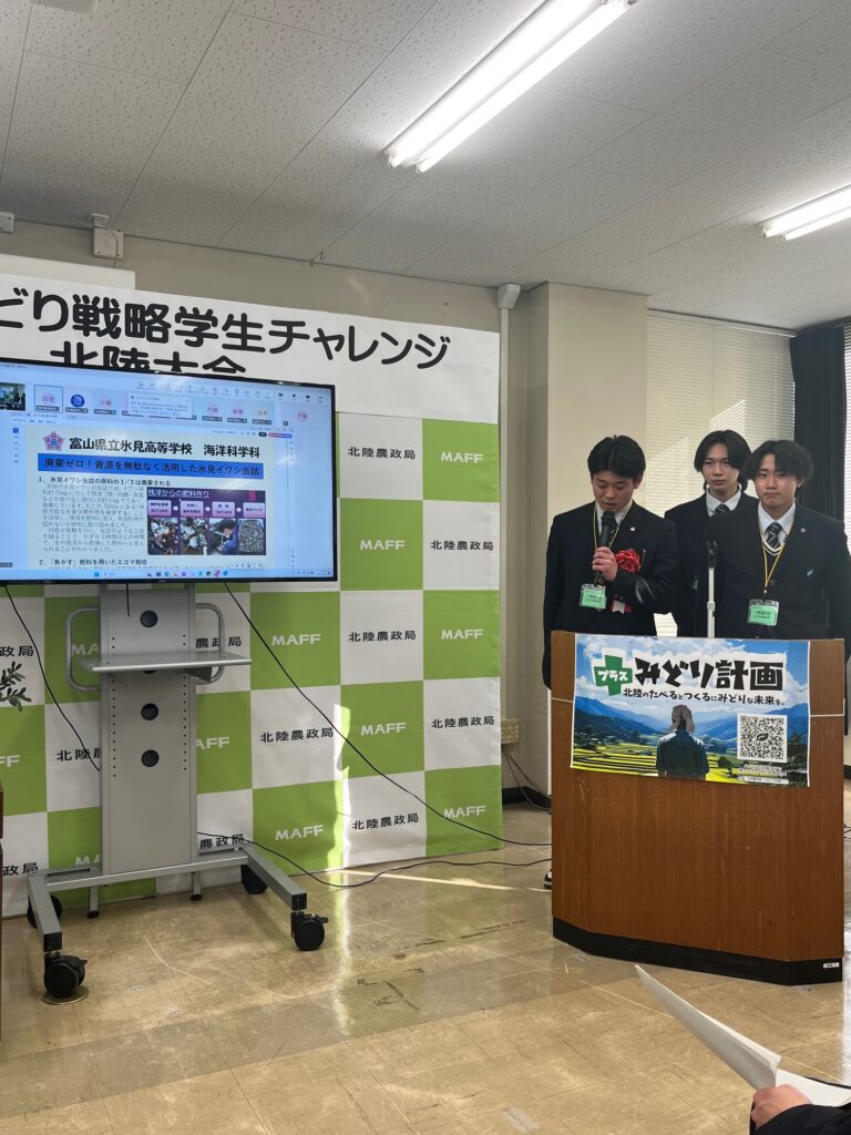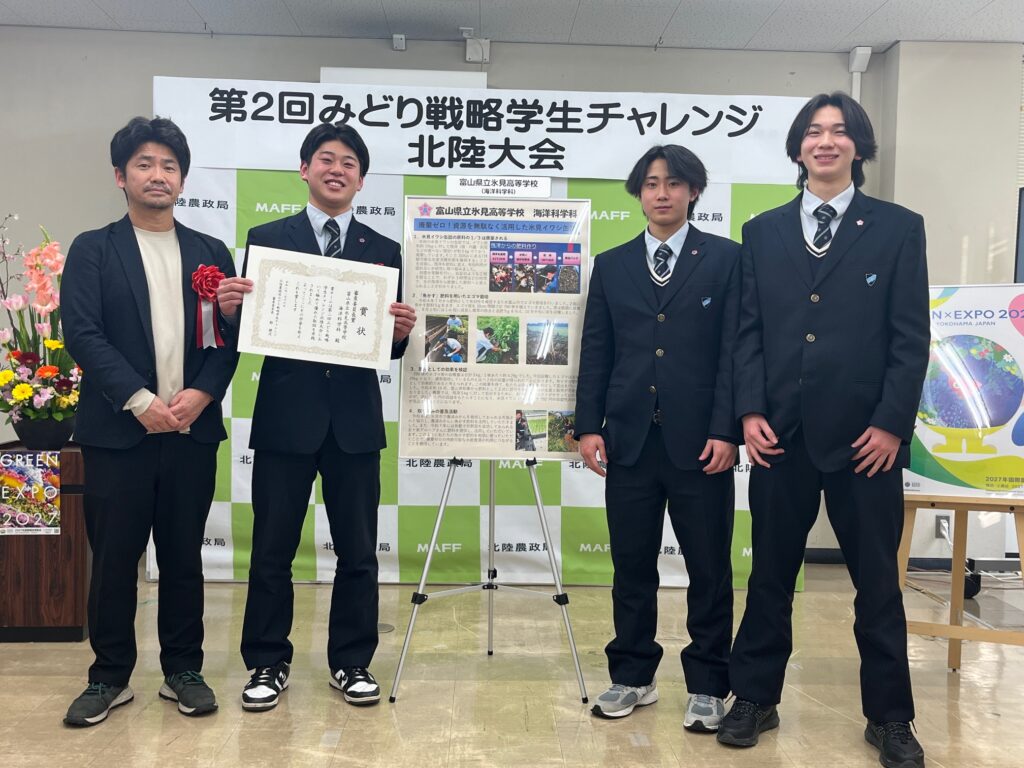 1月16日(木)、第2回みどり戦略学生チャレンジ北陸大会において、農業科学科が高校生の部で最優秀賞、海洋科学科が審査委員長賞を受賞いたしました。
